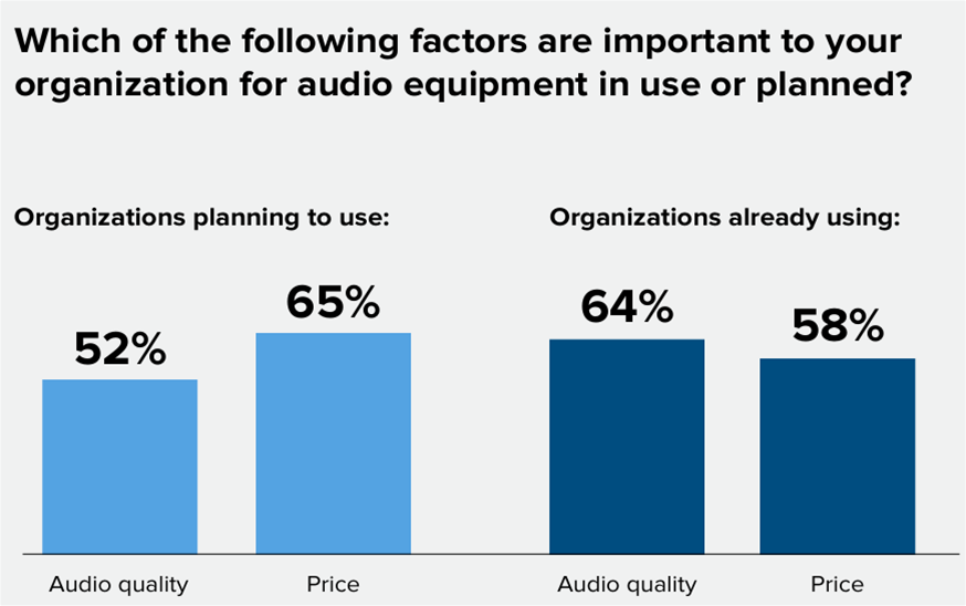 The costs of poor audio are far-reaching. Poor audio during meetings can disrupt the flow of ideas, leading to miscommunication, mistakes, and delays. IDC found that nearly half of organisations report productivity loss due to unclear sound, while 49 percent say poor audio undermines decision-making.